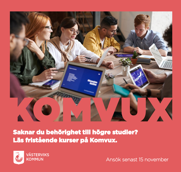 Då har du möjlighet att komplettera tidigare studier och bredda din kompetens med hjälp av Komvux i Västervik. Ansökningsperioden är mellan den 15 oktober- 15 november.