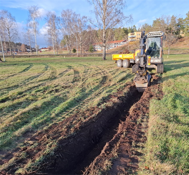 2024 Anläggande av minimultidamm Tjustvallen Gamleby. Vatten samlas till bevattning av fotbollsplaner och istillverkning.