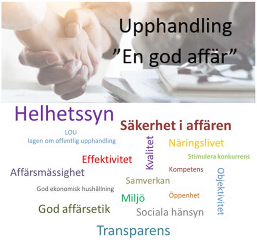 När en kommun/kommunalt bolag ska göra inköp ska alla företag som vill vara med och konkurrera ha samma möjligheter. Valet av leverantör ska inte vara beroende på relationer till en leverantör eller på grund av gamla vanor. Den leverantör som bäst uppfyller kraven som ställts som får avtalet. När vi väl har avtal med en leverantör ska vi sedan använda det avtalet, för att skattemedel ska användas på bästa sätt.