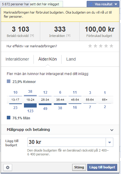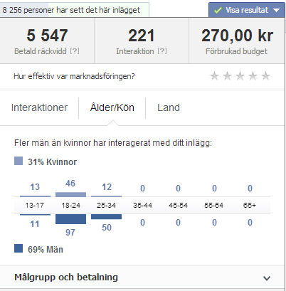 ^ Statistik för facebook-annons nr 3, 23 maj.