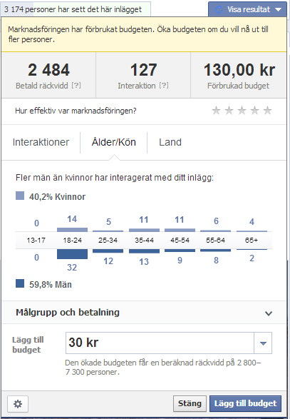 ^ Statistik för facebook-annons nr 2, 19 maj.