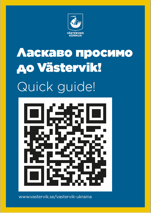 Från och med 1 september har Migrationsverket placerat ungefär 43 skyddsbehövande från Ukraina hos Västerviks kommun i totalt 16 stugor på Västervik Resort. Där kommer nu personer som har sökt skydd från Rysslands anfallskrig mot Ukraina att bo. På denna sida kommer Västerviks kommun att hjälpa till och informera om olika frågor som du som har flyttat in i stugorna kan behöva i din nya vardag i södra Västervik. Den här informationen finns automatiskt översatt till Ukrainska här nedan. Vi vill att du ska känna dig varmt välkommen till oss i Västervik!