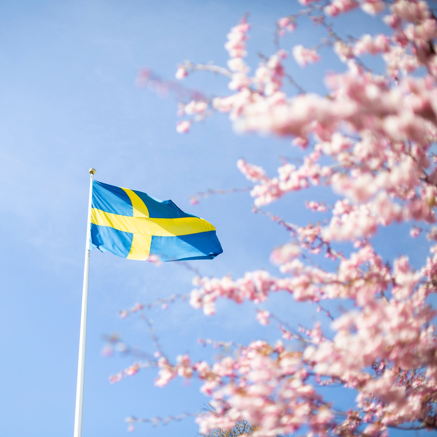 Orange ringar runt trädstammar och på uppsatta pålar och pilar (enligt svensk standard)