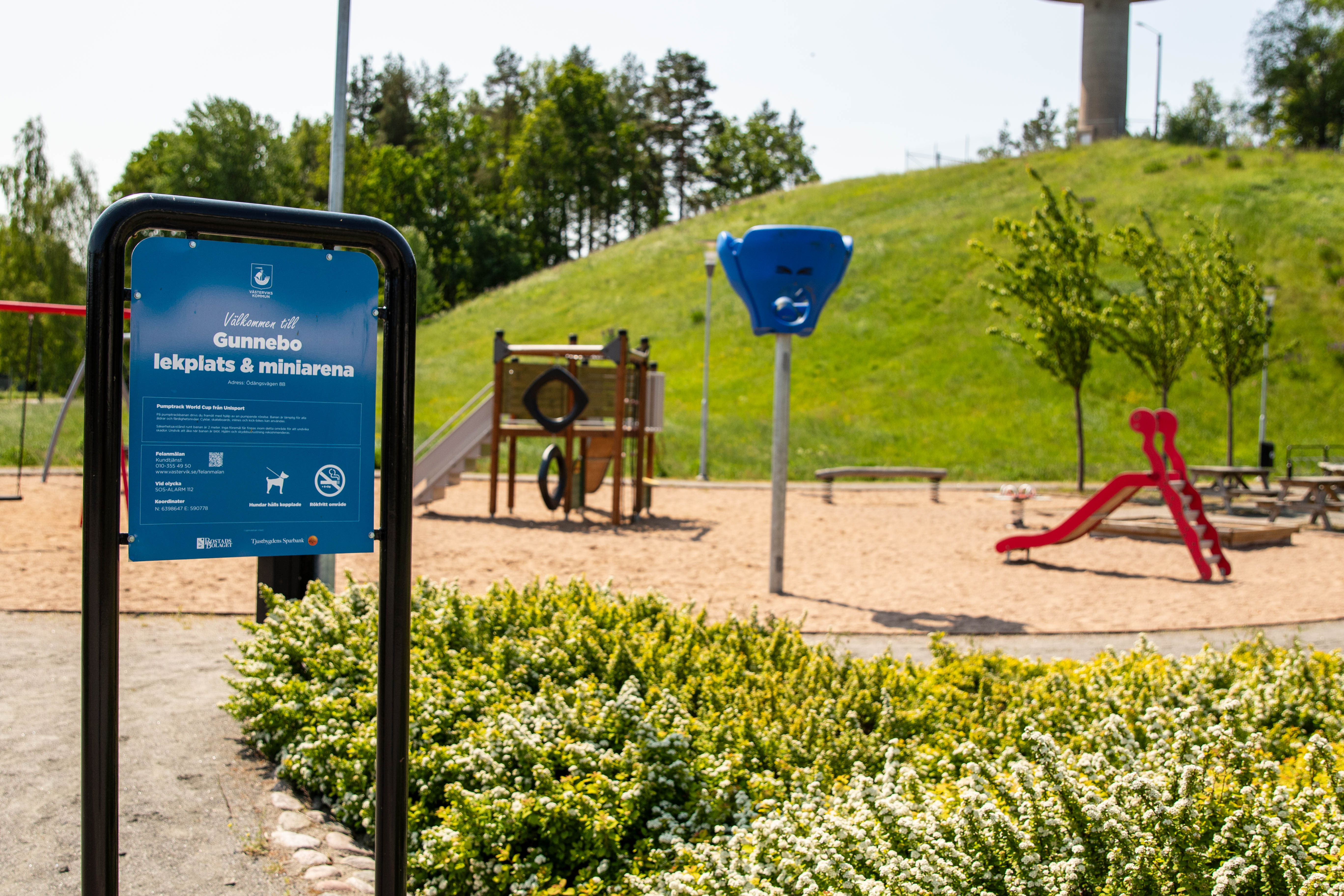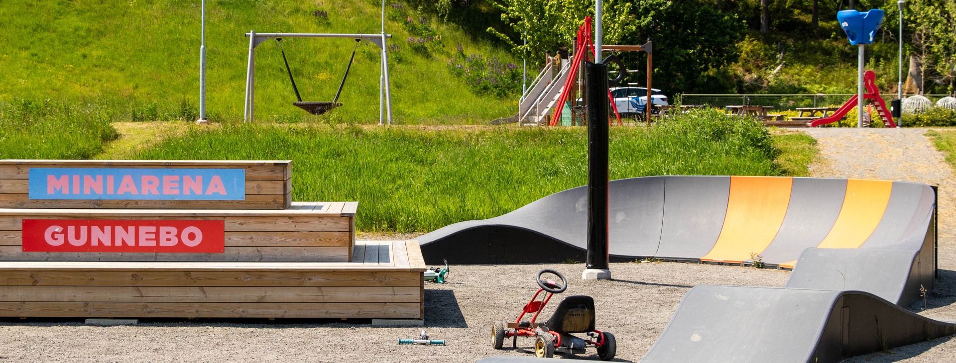 Intill lekytan ligger en miniarrena med pumptrackbana: en tempoväxlande bana där du kan cykla, åka sparkcykel eller skateboard och öva balans och teknik medan du har roligt tillsammans med andra.