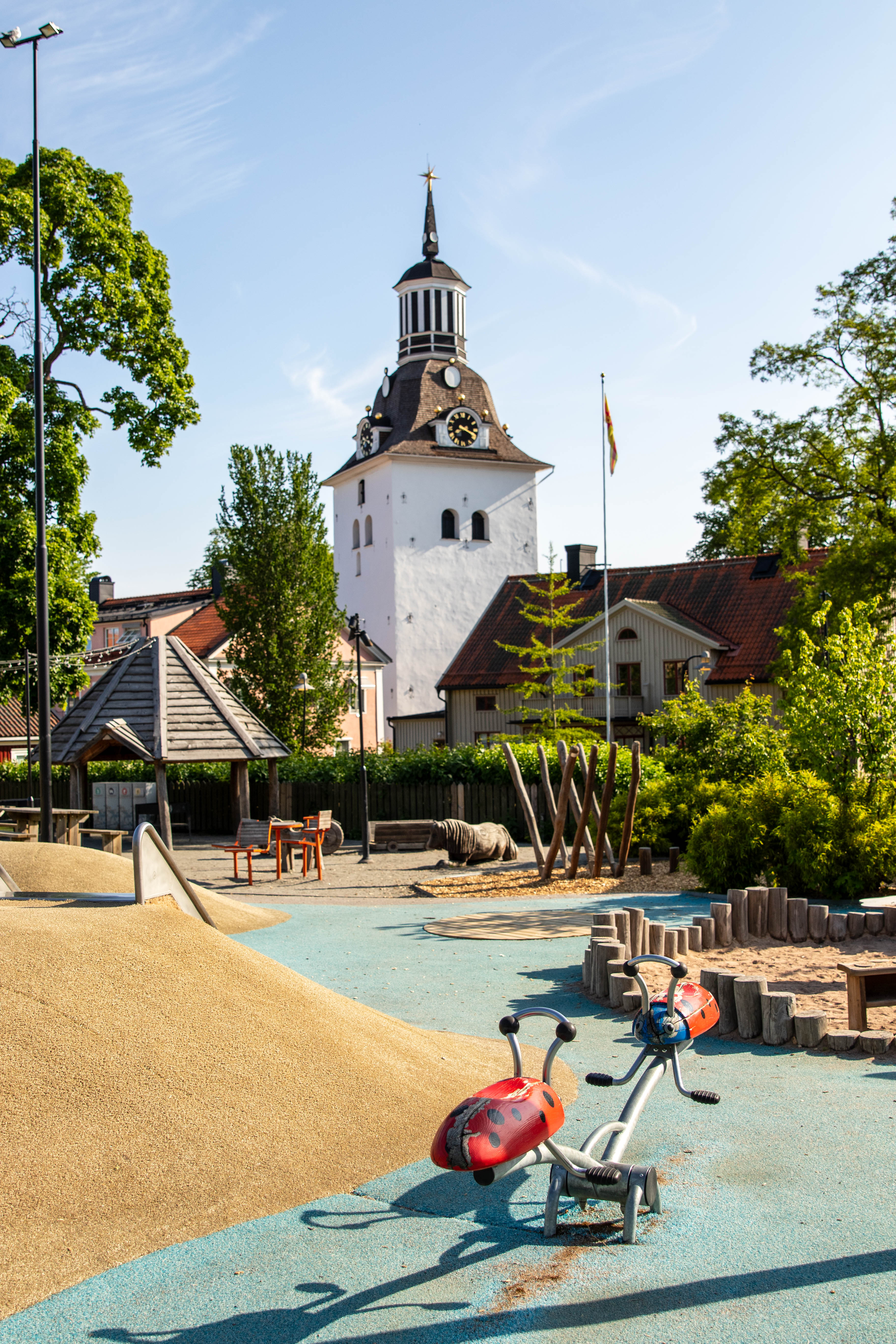 Lekytorna är utformade för olika åldrar och sätt att leka på, och parkens formgivning är inspirerad av Västerviks skärgård med mjuka former och blå färger.