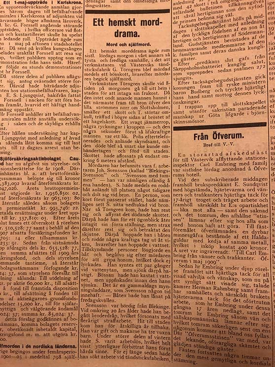 Korset i marken utmärker platsen där verkmästare Gustaf Törngren mötte sin död. Under lördagsmorgonen den åttonde maj 1909 hade Törngren lämnat tändsticksfabriken och var på väg in mot staden när ett skott plötsligt small av. Han träffades i högersidan av bröstet, föll till marken och avled kort därefter.