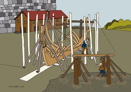 Genom att kasta ut avfall i strandkanten fick man successivt en större och större holme, men det tog tid. Flera hundra år. De yngre skikten i det tjocka flislagret kan dateras till 1400-tal och tidigt 1500-tal.