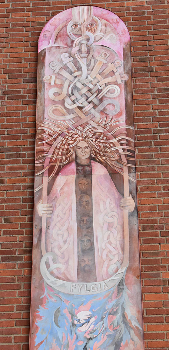 Information: Flygia Skyddsande som varje människa och ätt har. Framträder oftast i kvinno- eller djurgestalt och talar till människorna i drömmen. Nonchalerar man sin flygias råd kan det gå mycket illa. Modell för ansiktet var Jan Pols dotter Katarina.