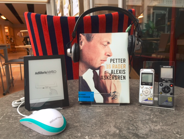 Inläsningstjänst. Här kan alla elever hitta inlästa läromedel. Prata med bibliotekspersonalen eller din lärare så lägger de till böcker på ditt konto.