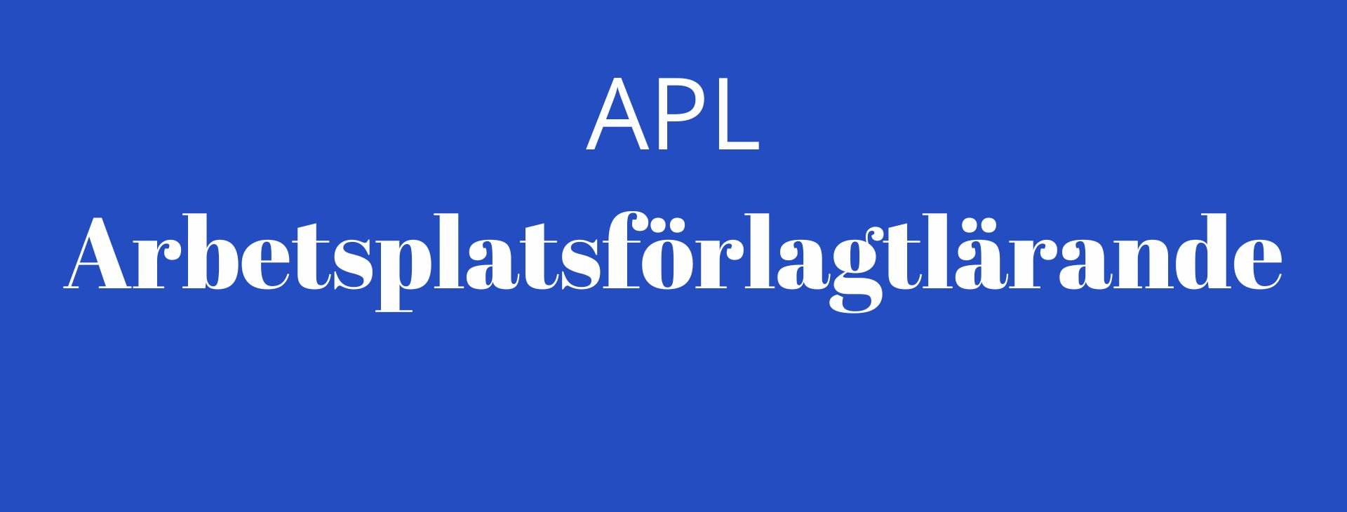 Bild med en text apl, arbetsplatsförlagtlärande.