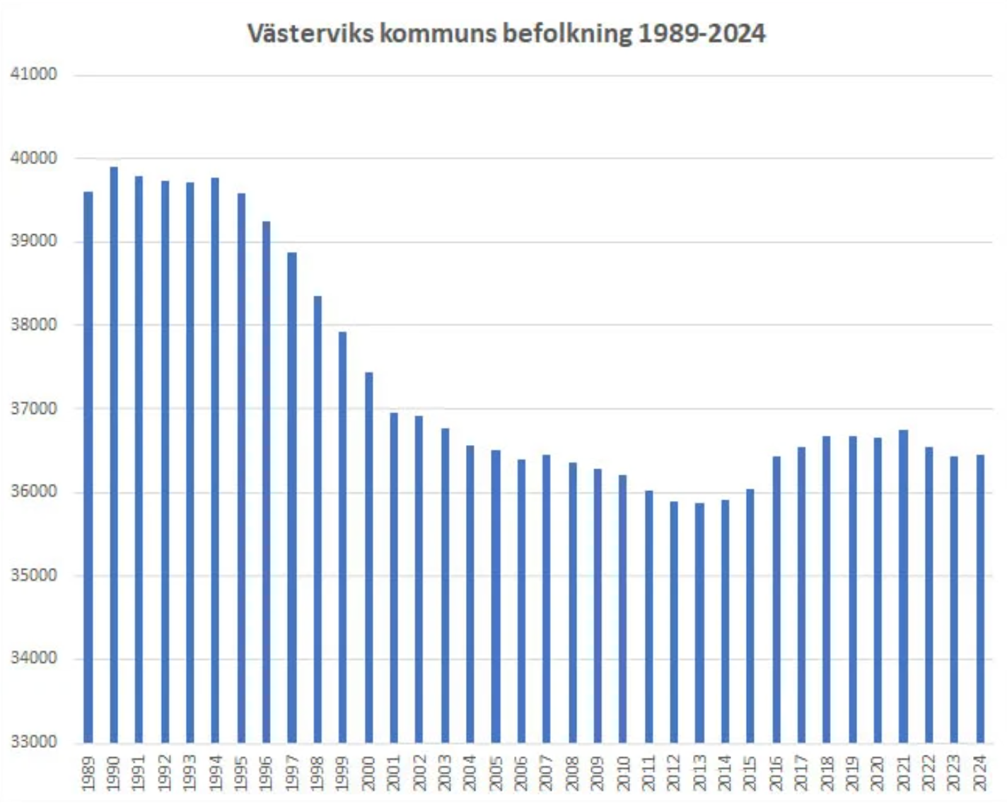 Befolkningsstatistiken från SCB för 2024 innehöll en glädjande vändning av Västerviks kommuns befolkningssiffror. Efter två års minskande befolkning 2022 och 2023 växer nu kommunens befolkning, om än med endast +13 invånare.