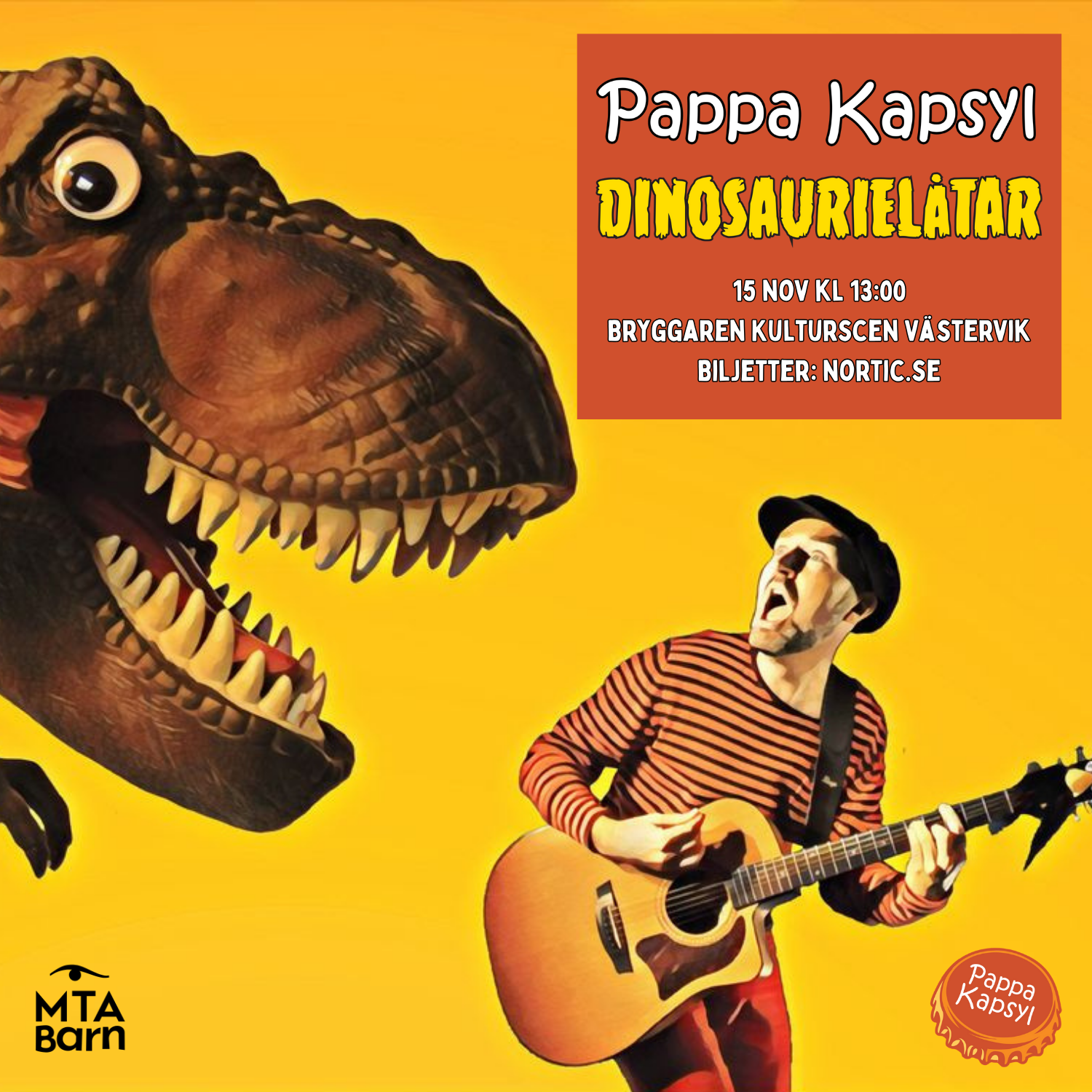 Pappa Kapsyl gör musik, böcker, videor och föreställningar om dinosaurier för barn och deras föräldrar! Med 17 miljoner streams på Spotify och mer än tusen konserter bakom sig har Pappa Kapsyl etablerat sig som en av Sveriges mest efterfrågade familjeunderhållare.